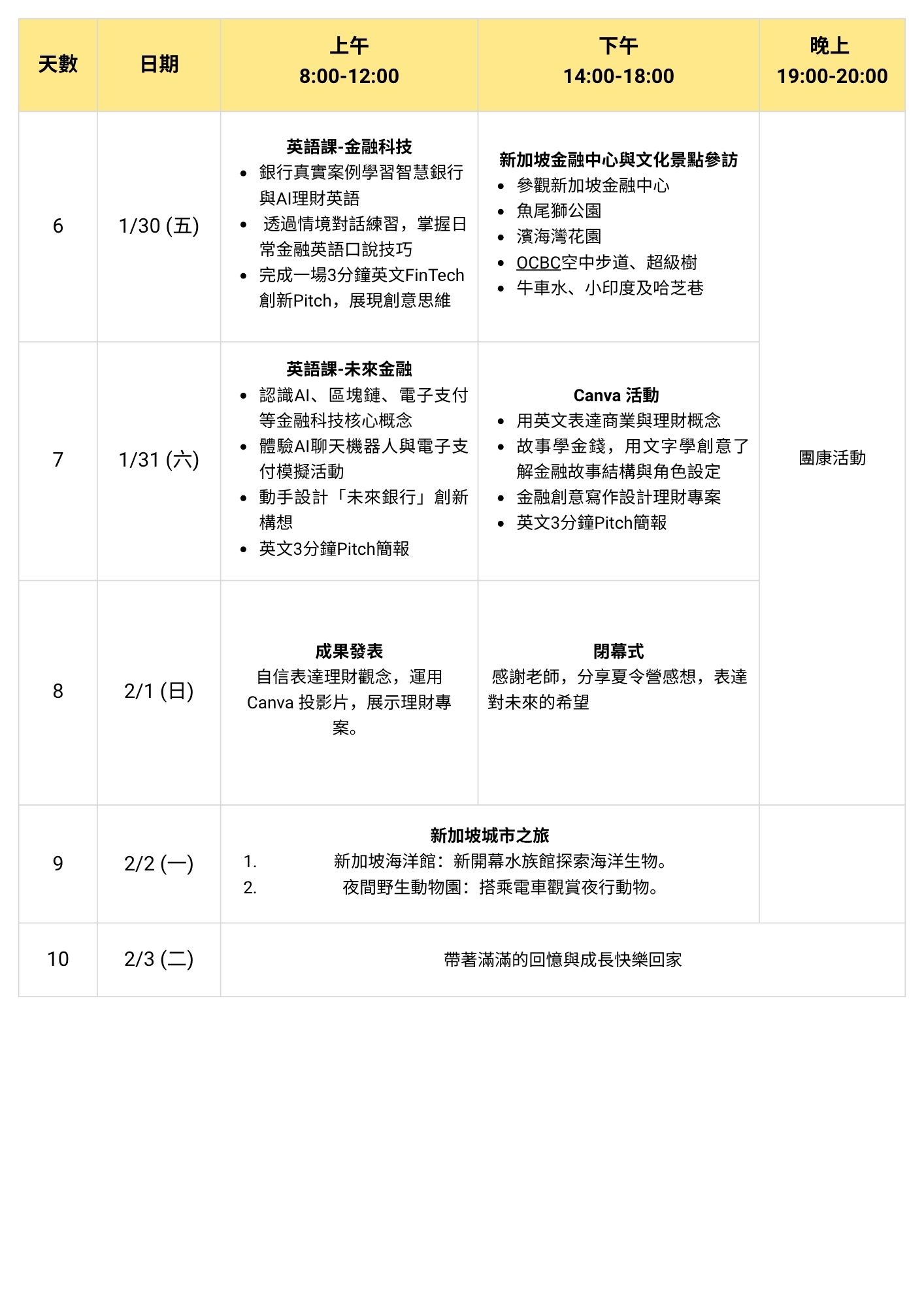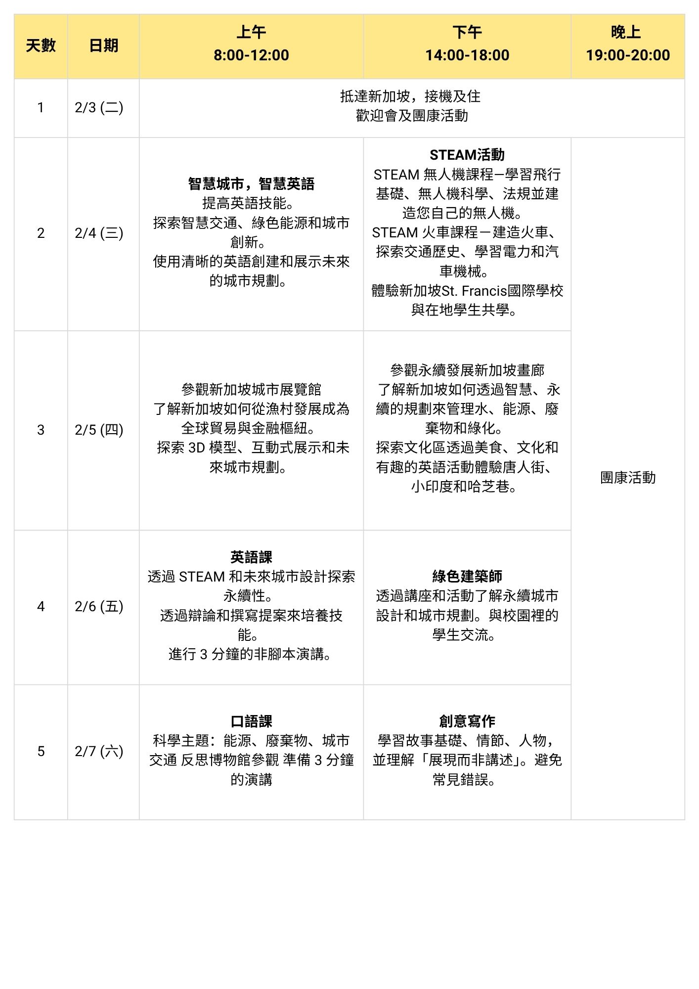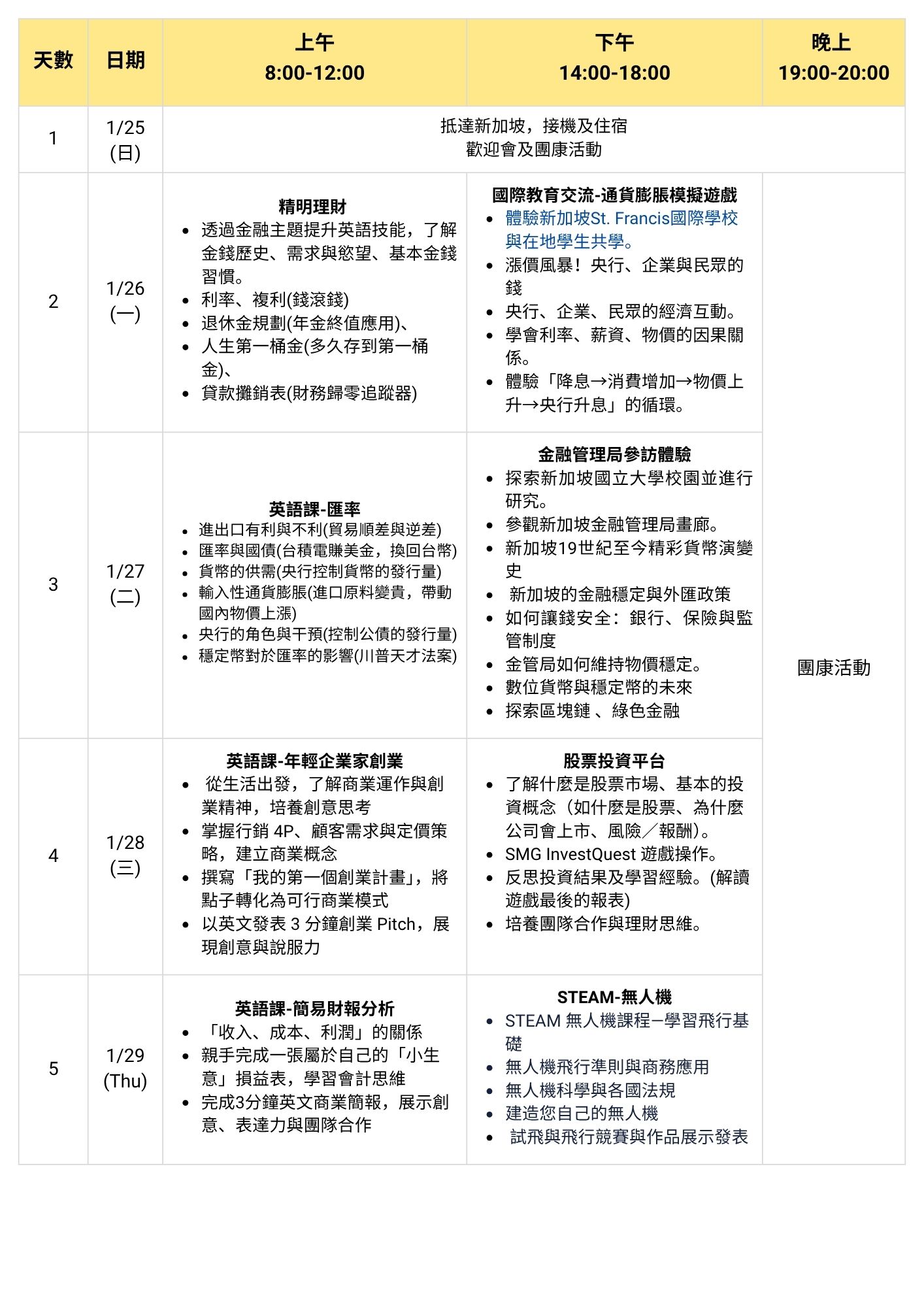 以全英語學習為核心,推出兩大主題梯次——STEAM創新探索營與金融理財思維營,讓學員依照興趣選擇專屬學習路徑,在新加坡的國際教育環境中開拓視野、提升能力。